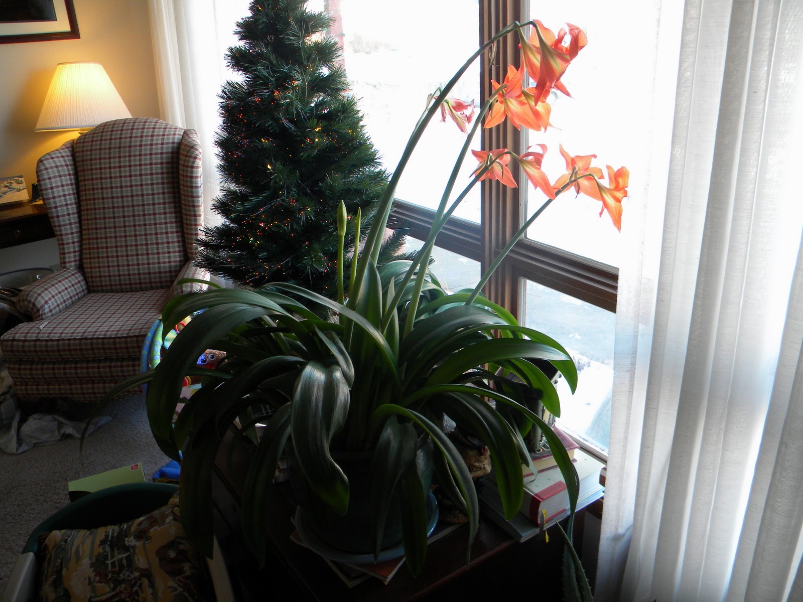 Here is a great pictures of my sister Becky's plant when it bloomed in December a few years back while I went there at Christmas. It loves it in front of her big window.